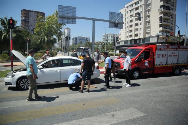 Mersin'de otomobilde sıkışan kedi yavrusu, anne kedi sesiyle kurtarıldı