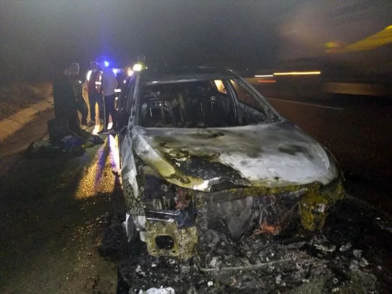 Durumu fark eden sürücü yol kenarina çektigi araçtan çikti. Ihbar üzerine olay yerine sevk edilen itfaiye ekipleri yangini söndürdü.