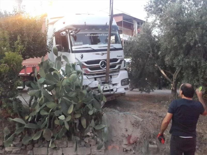 MERSİN - Mersin'de park halindeyken hareket eden tır refüje çarparak durdu.