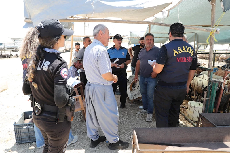 MERSİN - Mersin'de polis ekipleri, hayvan pazarında kurbanlık satıcılarını sahte para konusunda uyararak broşür dağıttı.