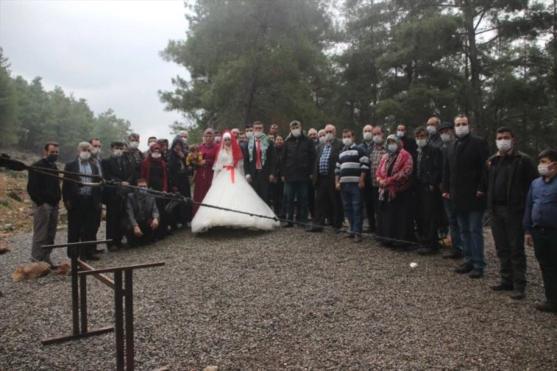 Genç çiftin düğününe, Gülnar Orman İşletme Müdürü Muharrem Şahin ve orman personeli de katıldı.
