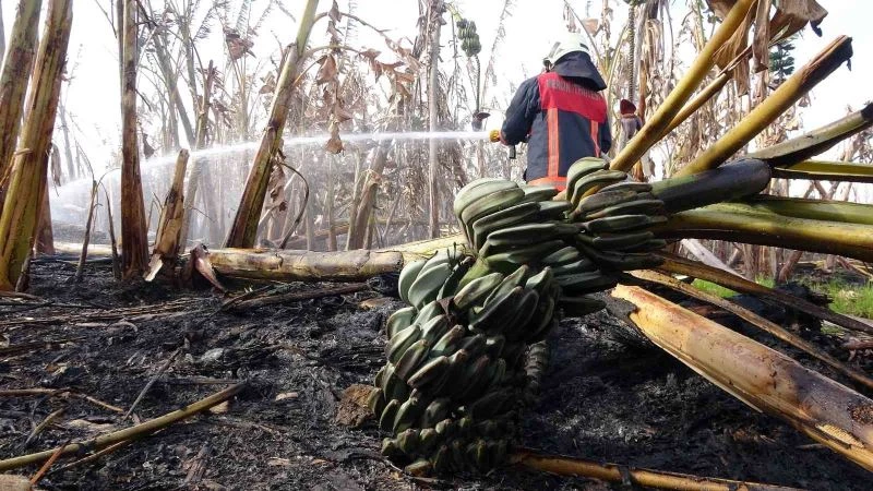 Muz bahçesi yanan Şakir Turhan, “Seranın oradan yangın çıkmış. Sera naylonu tutuşunca rüzgarla benim bahçeye de sıçramış. Bahçemin dörtte üçü yanmış. Damlama sulama sistemi yanmış, ne yapacağız bilmiyorum” dedi.