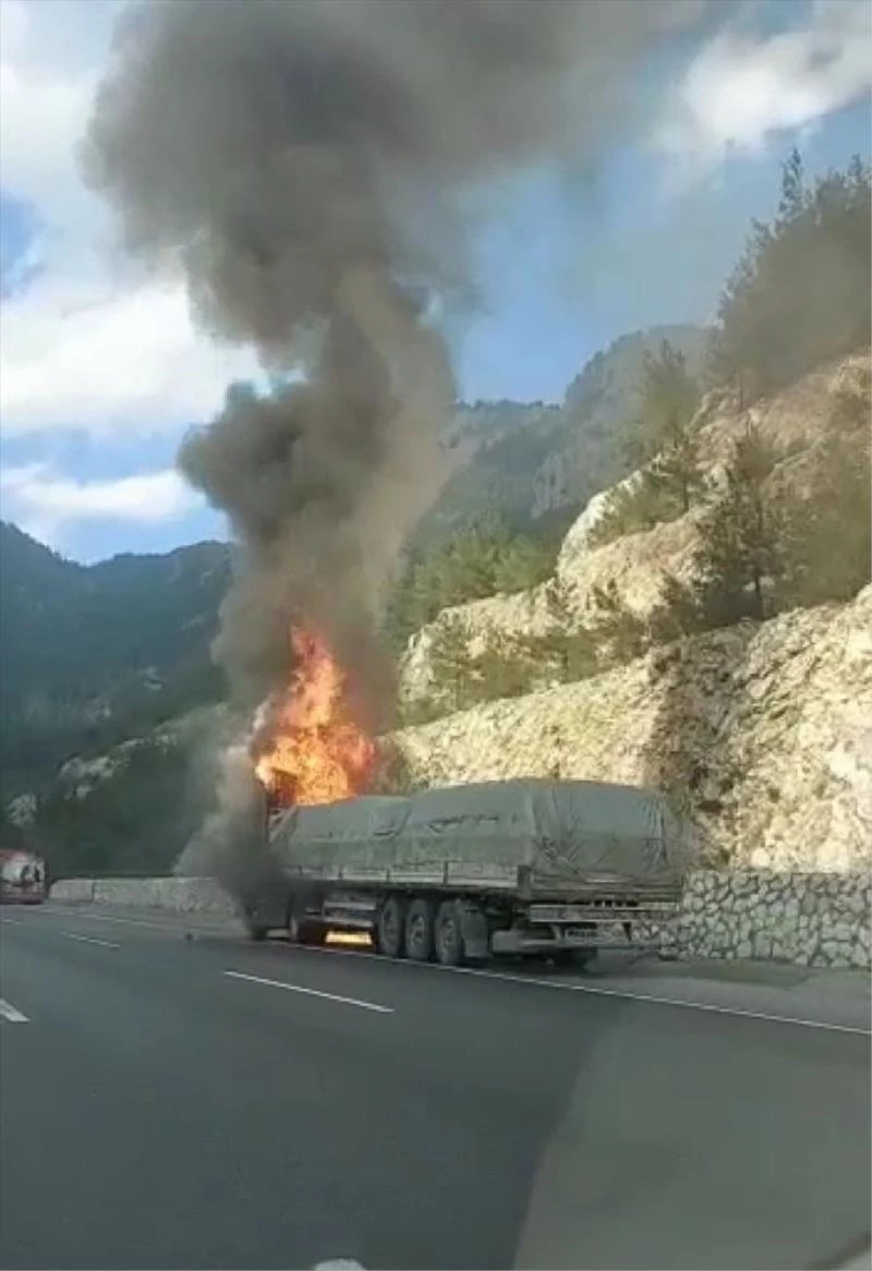 Yaşar G. idaresindeki 42 CZR 82 plakalı tır, Tarsus-Pozantı Otoyolu'nun Gülek mevkisinde alev aldı.