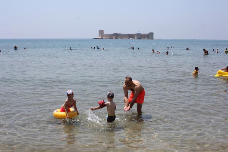 MERSIN (AA) - Dogu Akdeniz'in önemli turizm merkezlerinden Mersin'de, hem hafta sonunu hem de sicak havayi firsat bilen vatandaslar, plajlara akin etti.