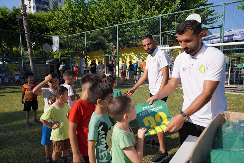 MERSİN - Erdemli'de, spor kurslarına katılan çocuklara forma ve çeşitli spor malzemeleri verildi.