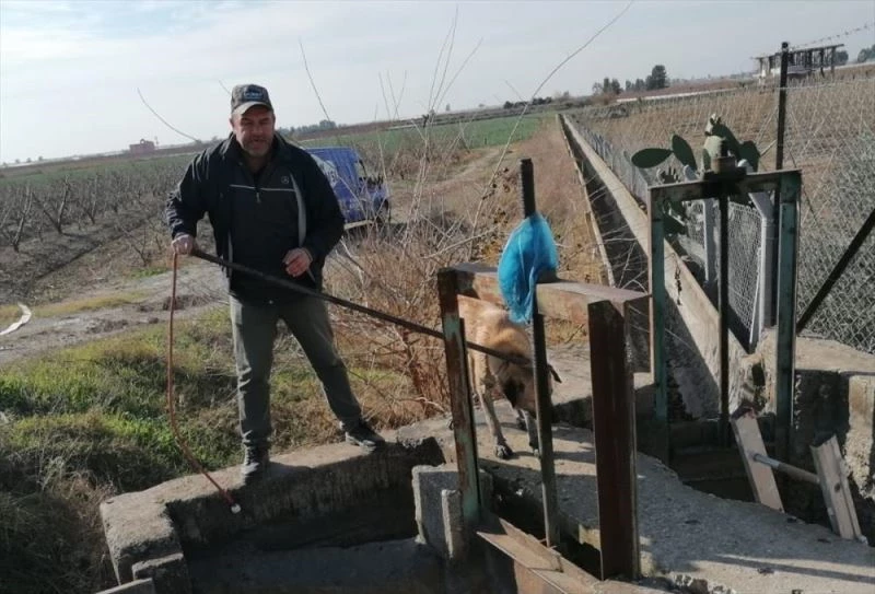 Mersin'de sulama kanalına düşen köpeği belediye ekipleri kurtardı