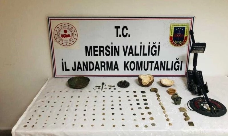 İl Jandarma Komutanlığından yapılan açıklamaya göre, KOM Şube Müdürlüğü ekipleri, tarihi eser kaçakçılığı yapan şahıslara yönelik yapılan çalışmalar sonucunda Tarsus ilçesinde 1 şahsın, tarihi eser niteliği taşıdığı düşünülen eşyaları satmak için müşteri aradığını tespit etti. Şüpheli şahsı yakalamak ve elindeki eserleri ele geçirmek için çalışma başlatan ekipler, belirlenen adrese operasyon yaptı. Evde arama yapan ekipler, 1 adet metal arama detektörü, 2 adet bakır çanak, 2 adet toprak çanak, 2 adet metal ok ucu, 4 adet metal yüzük, 7 adet hayvan figürü bulanan metal obje, 9 adet taş obje, 113 adet sikke ele geçirdi.