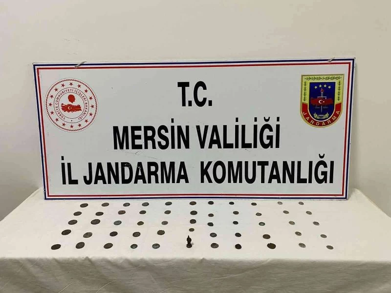 İl Jandarma Komutanlığından yapılan açıklamaya göre, bir istihbaratı değerlendiren ekipler, merkez Toroslar ilçesi Kaşlı Mahallesi’ndeki bir restoranda, elindeki tarihi eserleri satmaya çalışan şüpheliyi suçüstü yakaladı. Yakalanan şahsın üzerinde yapılan aramada Bizans ve Roma dönemine ait 46 adet bronz sikke, 8 adet gümüş sikke ve bir adet savaşçı figürlü bronz heykelcik ele geçirildi.