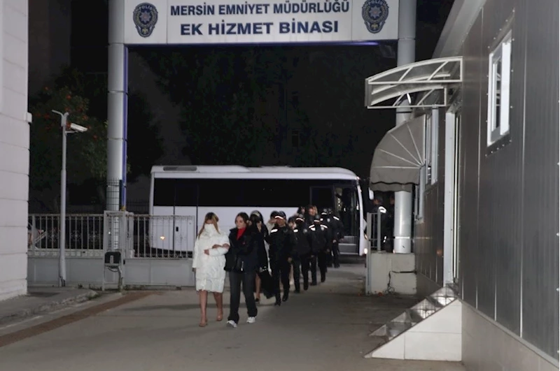 Operasyonda 10 şüpheli gözaltına alındı, 18 yabancı uyruklu kadın ifadeleri alınmak üzere emniyete götürüldü.