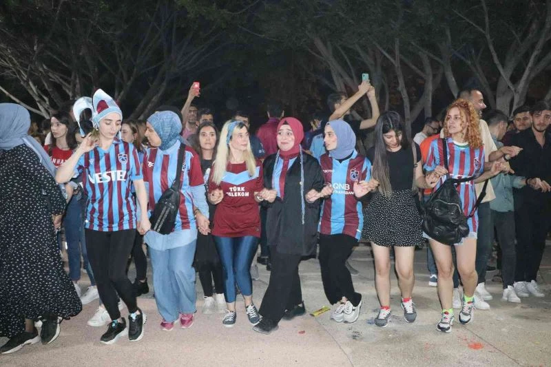 Şarkılar söyleyip eğlenen Mersin’deki Trabzonsporlu taraftarların şampiyonluk kutlamaları, gece geç saatlere kadar devam etti.