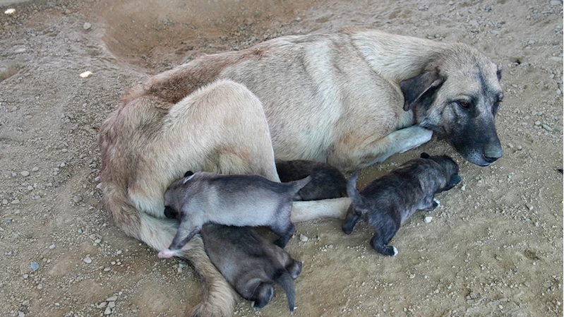 Bölgeye giden ekipler, uçurumdaki kayalıkların altına inerek ulaştıkları köpek ve yavrularını kurtardı.