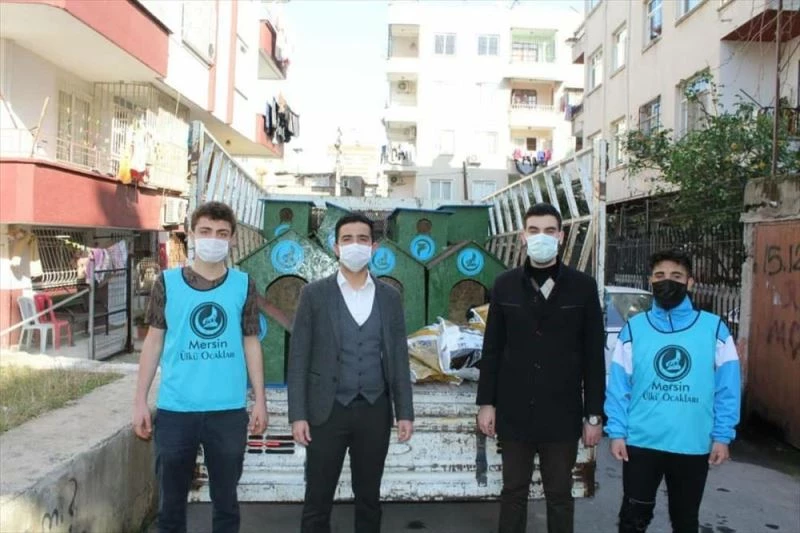 MERSİN (AA) - Ülkü Ocakları Mersin İl Başkanlığınca sokak hayvanları için hayata geçirilen proje kapsamında hazırlanan kulübeler, çevresine mama ve su konularak kentin çeşitli noktalarına bırakıldı.