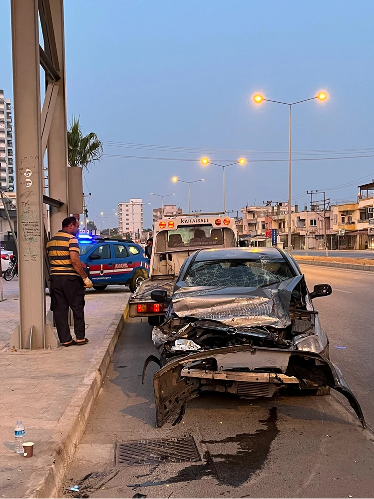 Erdemli ilçesi Arpaçbahşis Mahallesi'nde sürücüsünün ismi henüz öğrenilemeyen 77 ADM 021 plakalı otomobil üst geçide çarptı.