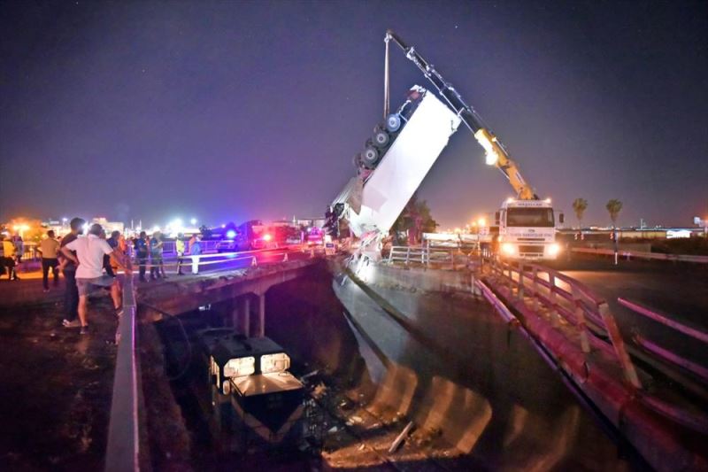 Yaklasik 10 metrelik yükseklikten tirin dorsesi, raylarda hareket halindeki yük treninin üzerine düstü. Dorseden ayrilan tir ise raylarin diger tarafina devrildi.