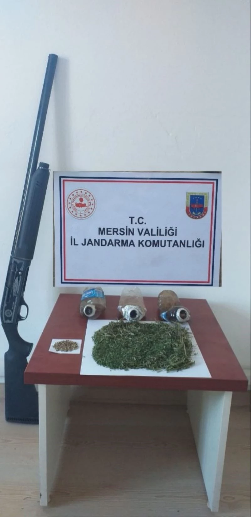 Edinilen bilgiye göre, Mersin İl Jandarma Komutanlığı’na bağlı ekipler, ilçeye bağlı Köseçobanlı Mahallesinde şüpheli bir şahsın evinde uyuşturucu madde bulunduğunu tespit etti. Bunun üzerine belirlenen adrese operasyon düzenleyen ekipler, 1 kişiyi gözaltına aldı. Ekiplerin evde ve eklentilerinde yaptığı aramada ise 48 gram kubar esrar, 377 adet kenevir bitkisi tohumu, 3 adet uyuşturucu madde içiminde kullanılan ’bong’ diye tabir edilen düzenek ve 1 adet ruhsatsız av tüfeği ele geçirildi.