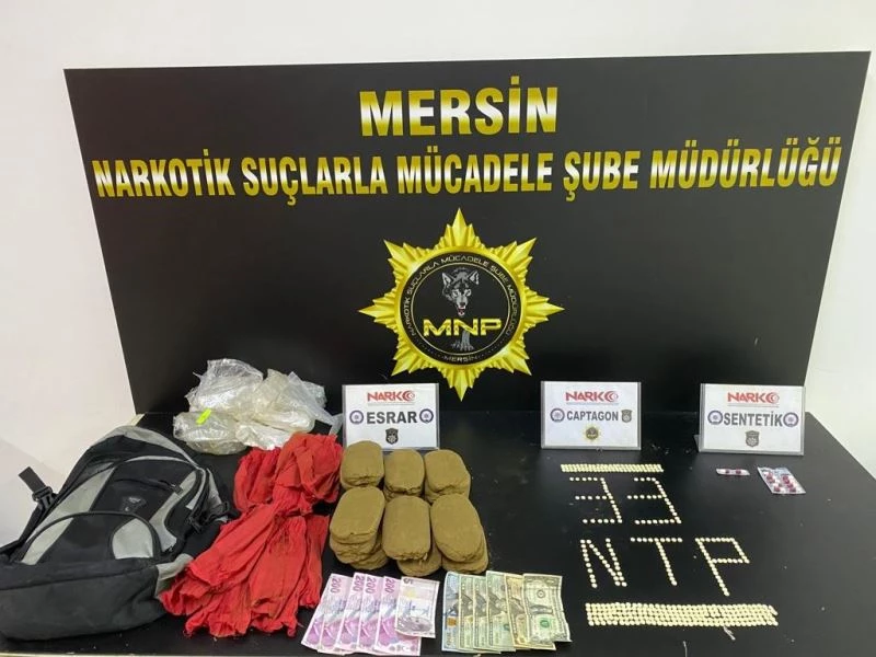 Mersin’de polis ekiplerince yapılan çalışmada, 3 kilo 650 gram esrar ile 400 adet uyuşturucu hap ele geçirilirken, 2 kişi tutuklandı.