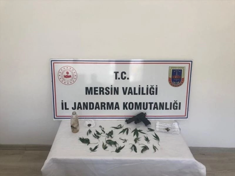 Evde yapılan aramada bir miktar kubar esrar, kurutulmaya bırakılmış 20 kök Hint keneviri, uyuşturucu madde içiminde kullanılan düzenek ve 1 tabanca ele geçirildi.