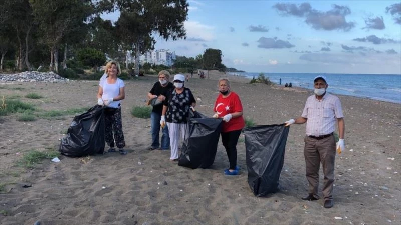 Yeni tip koronavirüs (Kovid-19) tedbirleri kapsaminda maske takip sosyal mesafe kuralina uyan vatandaslar ve belediye personeli, yaklasik iki saatlik etkinlikte sahili çöplerden arindirdi.