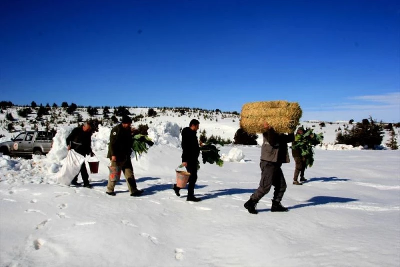 Ekipler, yaban hayvanları için belirlenen noktalara buğday, mısır, arpa, yonca balyası ve et bıraktı.
