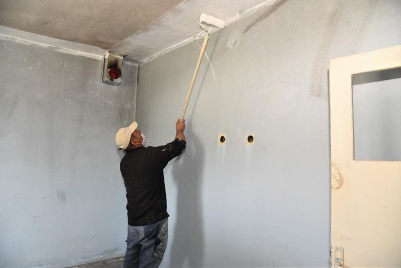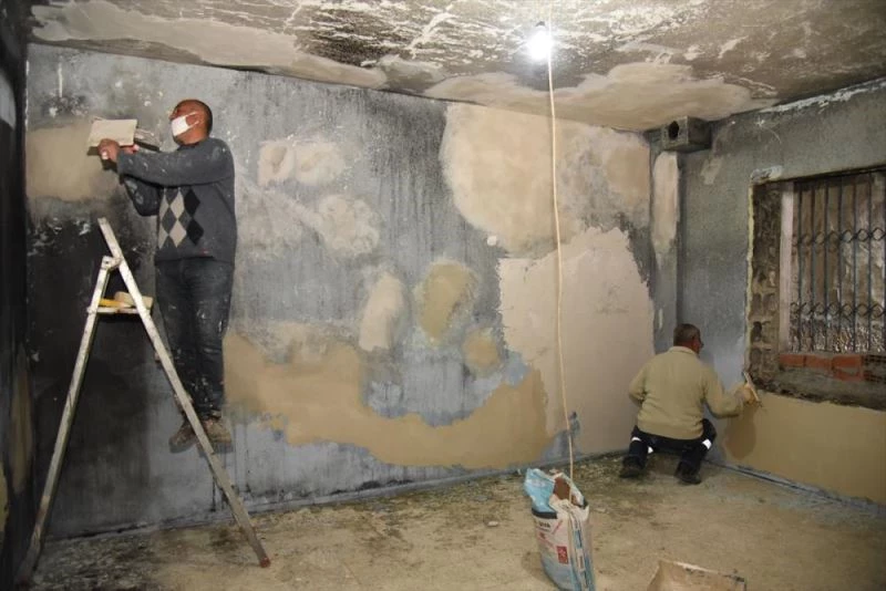 MERSIN (AA) - Mersin'de, yangin nedeniyle hasar gören ev belediye ekiplerince onarildi.