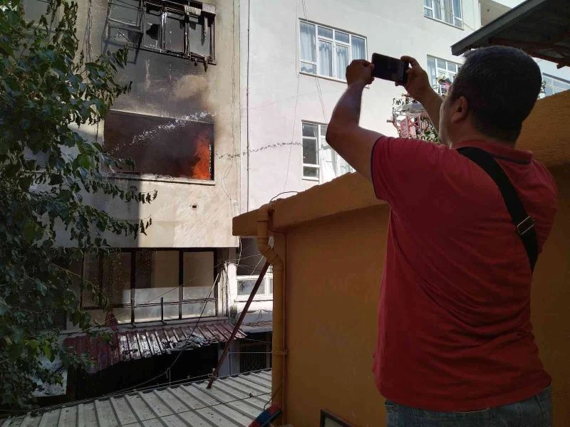 Saray Mahallesi 106. Sokak’ta bulunan Özlem İş Hanı’nda çıkan yangında muhasebeci ve harita mühendislik bürosu yanarak kül olurken, boş bir ev de küle döndü. Henüz nasıl çıktığı belirlenemeyen yangın sebebiyle duvarda asılı olan klima motorları yanarak zemine düştü.