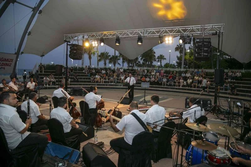Kültür Park içerisindeki Amfi Tiyatro’da Mersin Büyükşehir Belediyesi Türk Müziği Orkestrası tarafından gerçekleştirilen konsere, Mersinliler yoğun ilgi gösterdi. Türk Sanat ve Türk Halk Müziğinin birbirinden güzel eserlerine müzikseverler de eşlik etti. Kültür ve Sosyal İşler Dairesi Başkanlığı Koordinatörü ve Opera Sanatçısı Bengi İspir Özdülger ve Sosyal Hizmetler Dairesi Başkanı Serdal Gökayaz’ın da katılım sağladığı konserde, ’Benim gönlüm şarhoştur yıldızların altında’, ’Edremit’in gelini’, ’Gece kirpikli kadın’, ’Ben seni unutmak için sevmedim’ ve ’Agora meyhanesi’ gibi birbirinden güzel eserler seslendirildi.