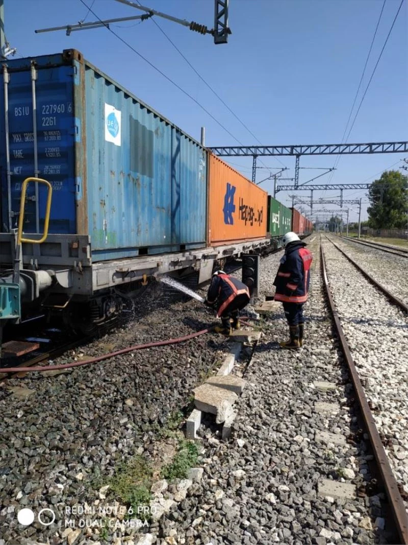 MERSIN (AA) - Mersin'in Tarsus ilçesinde yük treninde çikan yangin söndürüldü.
