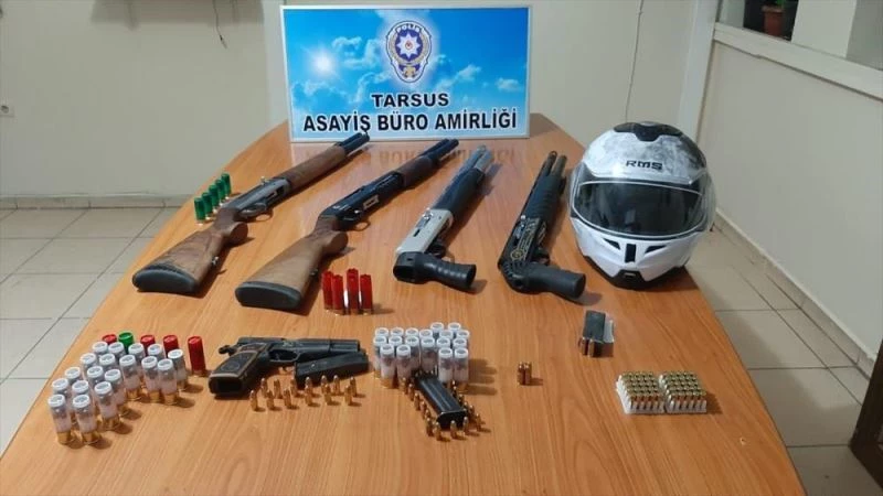 MERSIN (AA) - Mersin'in Tarsus ilçesinde dün aracinda otururken mermi isabet eden kadinin hayatini kaybettigi silahli kavgayla ilgili gözaltina alinan 3 zanlinin evlerinde silah ve mühimmat ele geçirildi.