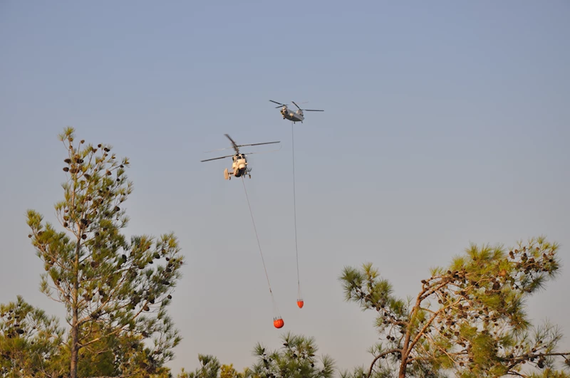 Gece çalışmalara ara veren söndürme helikopterleri de sabahın ilk ışıklarıyla havadan müdahaleye yeniden başladı.