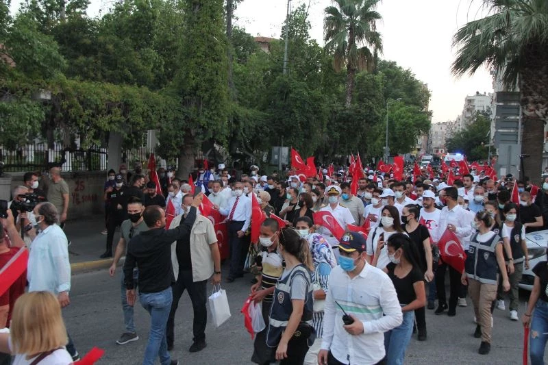 Mersinliler, 15 Temmuz hain darbe girişiminin yıl dönümünde meydanlara akın etti. Ellerinde Türk bayraklarıyla Cumhuriyet Meydanı’nı dolduran Mersinliler, darbecilere lanet yağdırdı.