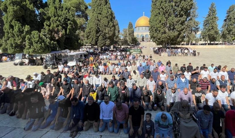 İşgal altındaki Kudüs’te bulunan Mescid-i Aksa’da 50 bin Filistinli cuma namazı kıldı.