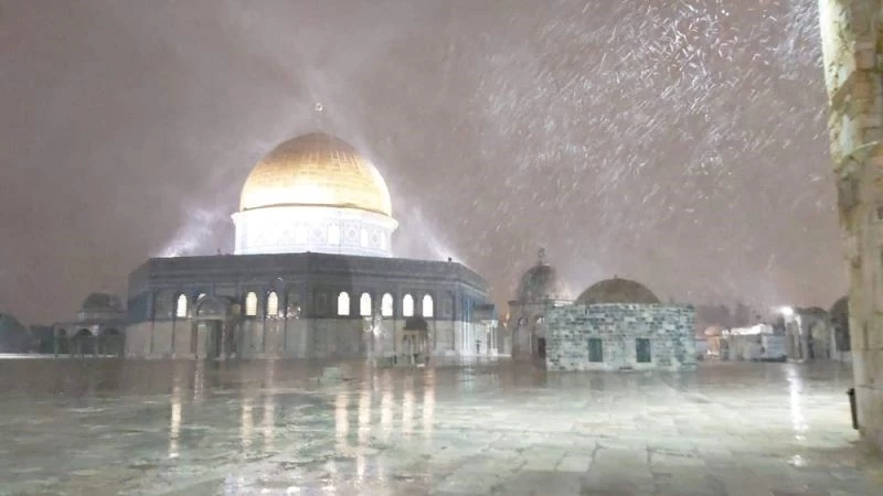 Kentte hayatı durma noktasına getiren kar yağışı, Kudüs kentinde yer alan Mescid-i Aksa izleyenlere görsel şölen yaşattı.