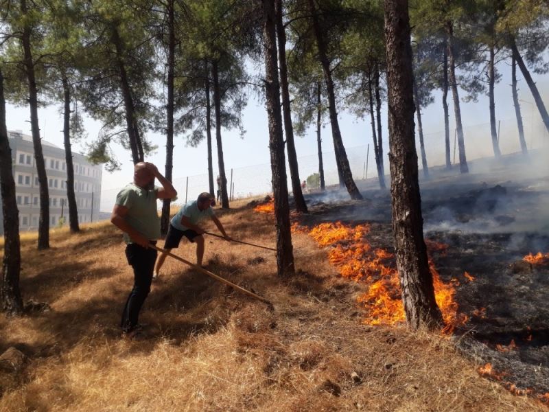 Edinilen bilgiye göre, öğle saatlerinde henüz bilinmeyen nedenle Kırıkhan Mesire Alanında başlayan yangın, sıcak hava ve rüzgarında etkisiyle kısa sürede yayıldı. Alevleri gören vatandaşlar, itfaiye ekiplerine ihbar verirken, çevredekiler ve hastane personeli kendi çabaları ile alevlere müdahale etti.