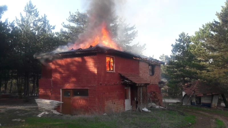 Bilecik’te mesire alanı içindeki 2 katlı ev çıkan yangında kül oldu.