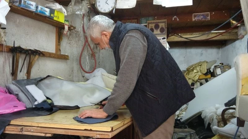 Hatay’ın merkez ilçesi Antakya’da koltuk döşemeciliği yapan 61 yaşındaki Metin Yaprak, 50 yıllık mesleğini ilk günkü hevesle sürdürüyor.