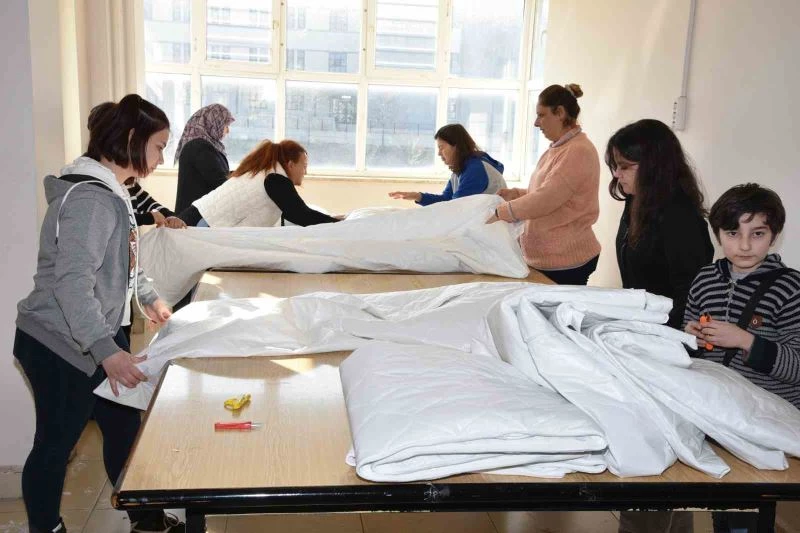 Meslek lisesi öğrencileri depremzedeler için uyku tulumu üretiyor