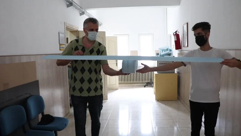 Öğretmen ve öğrenciler kurdukları RobATA ve mATAsyum isimli takımları ile insani yardım malzemesi bırakabilen bir insansız hava aracı tasarladı. Hava aracının tüm ince detayları düşünüldü. Yarışmada en hızlı ve en işlevsel olmak için yarışacak İHA için elektrik-elektronik alan öğretmenleri Mustafa Koçak, Nazmi Yılmaz ve Mahmut Katırcıoğlu yoğun tempo ile çalışıyor. Yaptıkları proje hakkında bilgi veren öğretmen Mustafa Katırcıoğlu, "Bu sene Teknofest’in açtığı liseler arası insansız hava araçları yarışmasına katıldık. Burada ön elemeyi geçtik. Şimdi uçağımız bitme aşamasındadır. Tüm mekanik kısımları tamamlandı. Montajı yapılmaktadır. 10-15 gün içerisinde deneme uçuşlarını yapacağız. Daha sonra Bursa’da düzenlenecek olan yarışmaya katılacağız. İlk defa okulumuz adına Teknofest yarışmalarına katılıyoruz. İnsansız hava aracı olarak Teknofest yarışmasına ilk defa katılıyoruz. Bunu yapmamızın sebebi öğrencilerimizi yeni alanlarda daha iyi geliştirebilmemiz için sanayi ile daha iç içe olarak onların derslere olan ilgilerini daha çok artırmak için projelere katıldık. Bu pandemi döneminde okula geldiğimiz belirli zamanlarda kısıtlı ölçülerde önlemler alarak çalışmalarımıza devam ettik. Uçağımızı bitirme aşamasına geldik. Elektronik mekanik aksanları olsun, bunların hepsini tamamlamak üzereyiz. İnsansız hava aracının bu sene 2 tane görevi var. Birinci uçmasında bilinen güzergahta zamana karşı yarışacağız. Bu turu geçtikten sonra ikinci turda belirlenen noktalarda uçuş yaparken insan yardım paketleri bırakacak. Bizim amacımız bunu öğrencilerde uçurabiliyor. İlk hedefimiz İHA’nın manuel olarak öğrenciler tarafında uçurulması daha sonraki hedefimiz ise yarışmada otonom olarak kendi kendine havalanarak tekrar kendisinin inmesini hedefliyoruz" dedi.