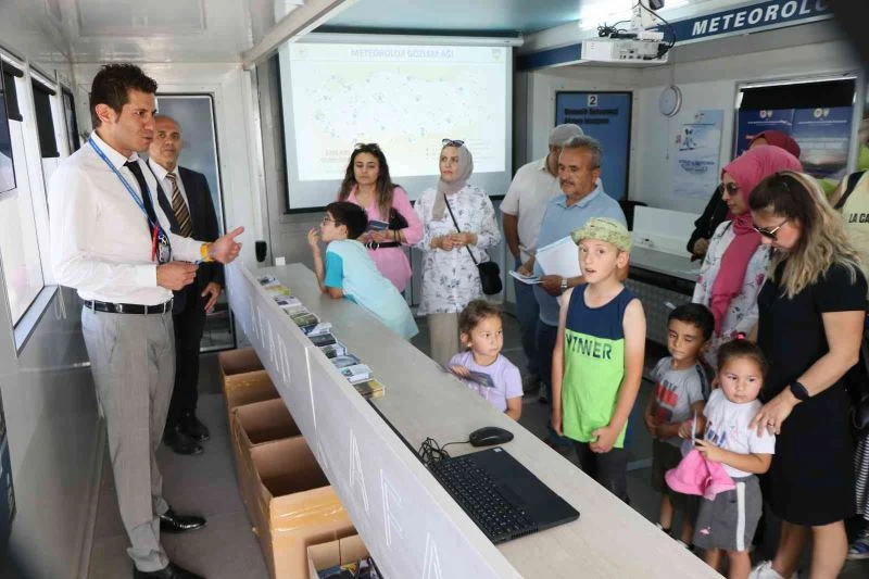Gözlem Tırı hakkında bilgi veren Meteoroloji Genel Müdürlüğü Hava Durumu Tahmin Uzmanı Fatih Budak, “İçerisinde bulunduğumuz Meteoroloji Gözlem Tırı 2019 yılında Afet ve Acil Durum Başkanlığıyla yapmış olduğumuz protokol çerçevesinde geldi. Yurdumuzda yaşanabilecek her hangi bir deprem, afet, sel, su baskını, taşkın, orman yangını, heyelan gibi hem doğal kaynaklı hem de meteoroloji kaynaklı afetlerde olay yerine giderek oradaki paydaşlarımıza 7/24 kesintisiz olarak meteorolojik bilgi vermekteyiz. Sonrasında diğer bakanlıklarımız özellikle Milli Eğitim Bakanlığımıza bağlı genel müdürlüklerimizle yapmış olduğumuz yine protokol çerçevesinde tüm yurtta yapılacak tüm etkinliklere Meteoroloji Gözlem Tırımızla giderek vatandaşlarımıza, öğrencilerimize meteorolojik okuryazarlığı konusunda farkındalık oluşturuyoruz. Malumunuz önlemek ödemekten daha ucuzdur. Biz de oluşabilecek, yaşayabileceğimiz olumsuzlukları önlemek adına farkındalık oluşturuyoruz. Sizin aracılığınızla da önemle üzerinde durduğumuz noktada vatandaşlarımızın dikkatini çekmek istediğimiz nokta ise Meteoroloji Genel Müdürlüğümüzün yerli ve milli olan cep telefonlarına indirerek doğru ve güvenilir haber durumunu, hava durumunu oradan alabileceği konusunda da hatırlatmada bulunmak isteriz” dedi.