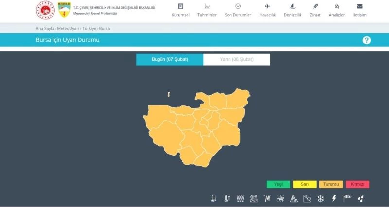 Meteoroloji Genel Müdürlüğü, Bursa’da bugün etkisini göstermesi beklenen fırtına için turuncu uyarı yaparak, soba ve baca gazı zehirlenmesi, muhtemel çatı uçması, ağaç ve direk devrilmelerine karşı halkı uyardı.