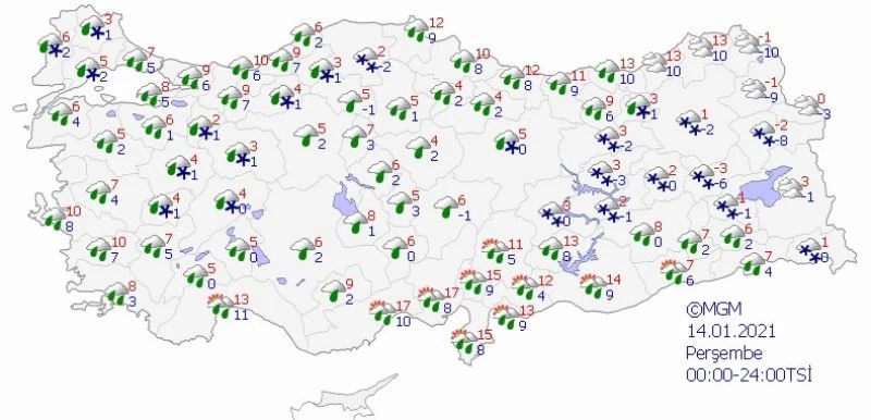 Öte yandan aynı haritada sıcaklık değerleri bugün 18 dereceye kadar çıkarak Ocak ayı sıcaklık rekorunun kırılması bekleniyor.