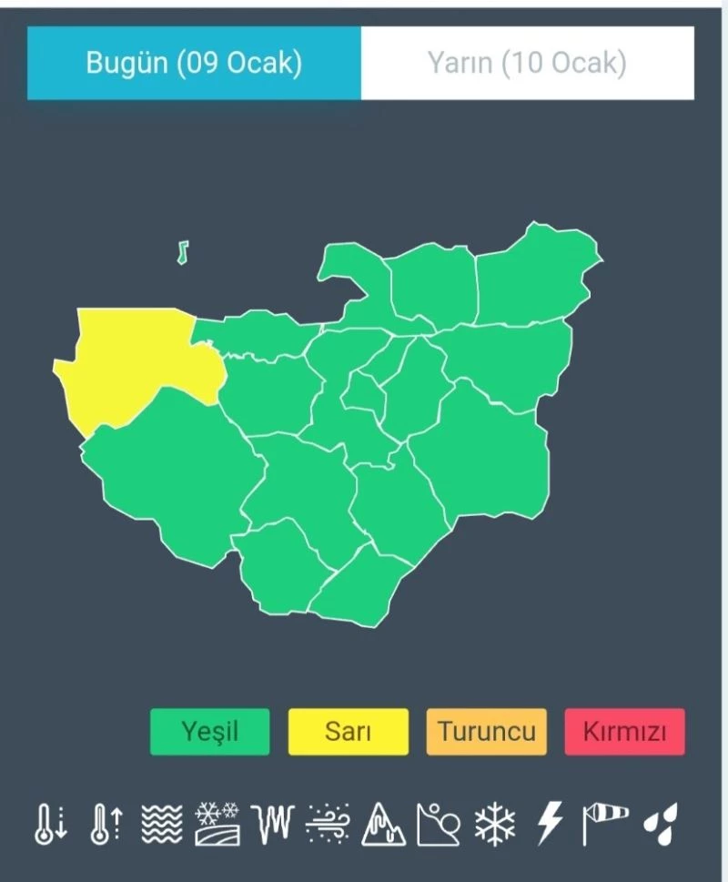 "Sağanak yağışların zaman zaman etkisini artırarak kuvvetli (30-60 kilogram/metrekare) olması beklendiğinden yaşanabilecek olumsuzluklara karşı dikkatli ve tedbirli olunmalıdır."