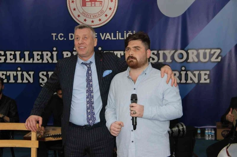 Düzce – Düzce’de Valiliğin özel bireyler için başlattığı “Engelleri birlikte aşıyoruz” kampanyası çerçevesinde ünlü şarkıcı Metin Şentürk, konser verdi. Konserde Düzce Üniversitesi Türk Müziği Bölümünde okuyan görme engelli öğrenci ile düet yapan Metin Şentürk, öğrencinin geleceği ile ilgili olarak yardım edeceğine dair söz verdi ve kendisi için şarkı yazacağını söyledi.