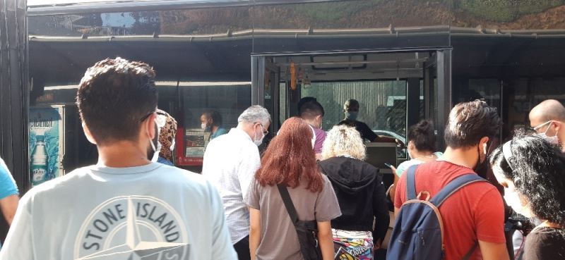 İstanbul’da özellikle iş saatlerinde metrobüslerde yaşanan yoğunluk dikkat çekiyor. Duraklarda metrobüs bekleyen vatandaşlar, sosyal mesafe kurallarını da hiçe sayıyor.