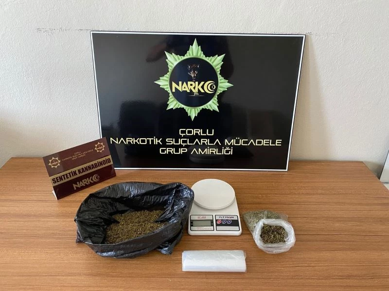 Çorlu Hıdırağa Mahallesinde uyuşturucu ve uyarıcı madde satışı yapan şahıslara yönelik yapılan çalışmalar kapsamında A.Ç. isimli şahsın ikametinin karşısında bulunan metruk binaya uyuşturucu madde sakladığı yönünde bilgi gelmesi üzerine harekete geçerek bahse konu metruk alanda arama yapan polis ekipleri fişeklenmemiş halde yaklaşık 200 gram uyuşturucu maddelerden bonzai olarak da bilinen sentetik kannabinoid maddesi, 1 adet hassas terazi, uyuşturucu madde fişeklemesinde kullanılan şeffaf poşetler ele geçirdi.