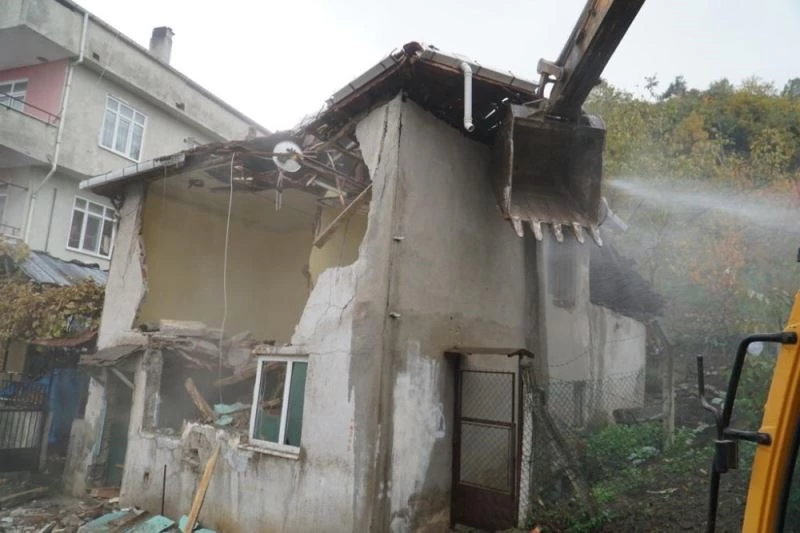 Gölcük Yukarı Değirmendere’de bulunan metruk yapı Büyükşehir ve Gölcük Belediyesi ekiplerince yıkıldı.