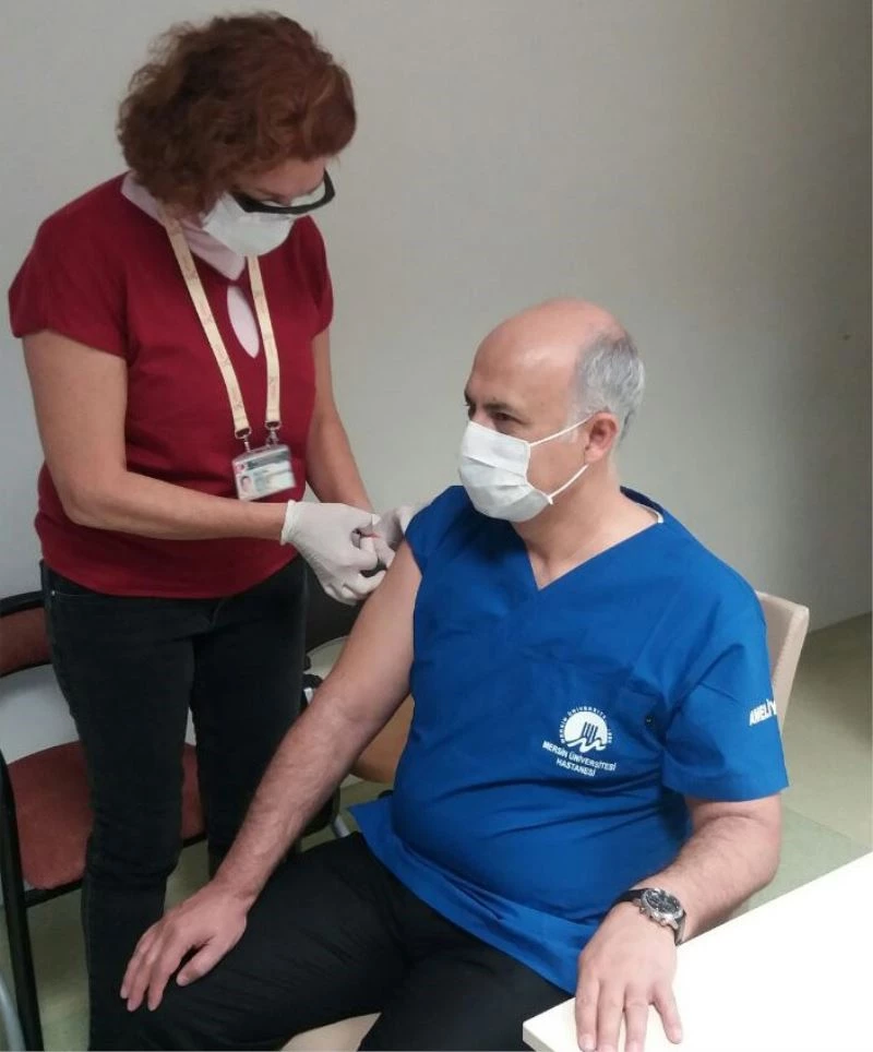 Mersin Üniversitesi Tıp Fakültesi Hastanesi’nde ilk aşının, Mersin Üniversitesi Rektörü (MEÜ) Prof. Dr. Ahmet Çamsarı’ya yapıldığı bildirildi.