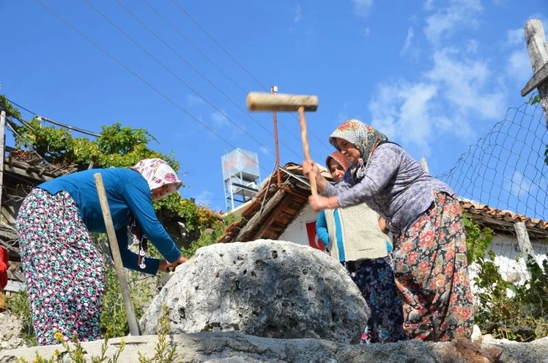 Antalya’nın Akseki ilçesinde kadınlar 800 yıllık dibek taşında, tokmakla atalardan kalma buğday dövme geleneklerini asırlardır sürdürüyor. Akseki’nin Hocaköy Mahallesinde yaşayan kadınlar atalardan kalma 800 yıllık dibek taşında, tokmakla buğday dövme geleneklerini asırlardır sürdürüyor. Hocaköy Mahallesi’nde yaşayan Şenay Zorlu, atalarından kalma bazı gelenekleri imkansızlıklara rağmen sürdürdüklerini söyledi.