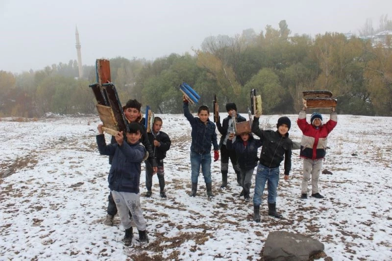 Ağrı merkeze bağlı Yukarı Küpkıran köyünde yaşları 10 ile 15 arasında değişen çocuklar, mevsimin ilk karının tadını çıkardı. Tahtadan yaptıkları kızaklarla köyün dışında bulunan hafif engebeli arazilere çıkan çocuklar, soğuk havaya aldırış etmeden beraberinde getirdikleri tahta kızaklarla kayıyorlar. Kızaklarla kaydıktan kısa bir süre sonra kar topu oynayarak vakit geçiren çocuklar ardından evlerine dönmek üzere yola koyuldular.