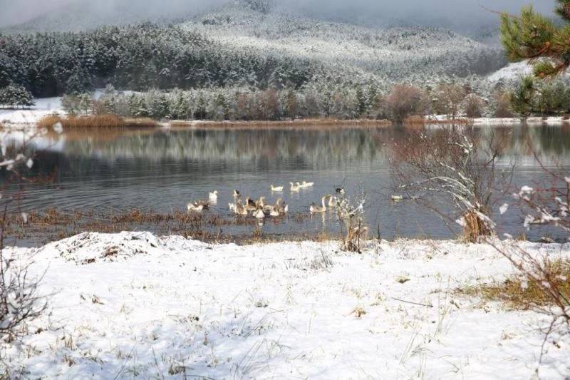 Meteoroloji’nin yağış uyarısıyla ilçe merkezinde başlayan yağmur, yüksek kesimlerde kar yağışı şeklinde görüldü. Bin 450 rakımlı Gölcük yaylası mesire alanı beyaza büründü. Beyaz örtü ile kaplanan volkanik gölün çevresindeki ormanlık alan, taş konak evleri ve sosyal tesislerin kar ile buluşması, kartpostallık görüntüler oluşturdu.