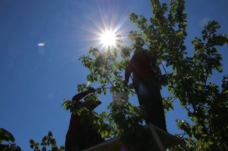 Merkeze bağlı İçme köyünde Keban Baraj Gölü Havzası’nın çevresinde yılın ilk kiraz hasadı başladı. Yaklaşık bir haftadır olduğu gibi bayramın ilk gününde de sabahın erken saatlerinde kiraz bahçesine giren mevsimlik işçiler, dallarda olgunlaşan kirazları topladı. Toplanan kirazlar, kasalara yerleştirildikten sonra yol kenarında kilosu 15 TL’den satılmaya başlandı. Pandemiden dolayı bayramı evde geçirmek yerine çalışmaya gelen işçiler, pandemiden dolayı 1,5 yıldır eski bayramları yaşayamadıklarını aktardı.